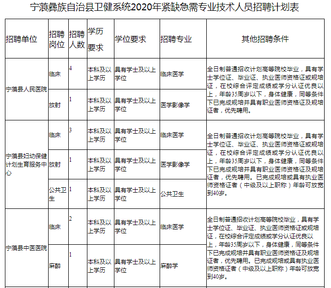 寧蒗彝族自治縣衛(wèi)生健康局2020年公開(kāi)招聘編制內(nèi)緊缺急需專業(yè)技術(shù)人員的公告